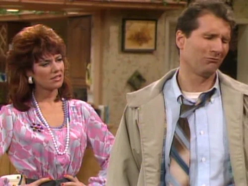 He gives her a peck on the cheek and heads for the door but Peggy stops him saying that he can't go to the game because she invited company over. Staggered he asks who would want to come over to their house. Peggy explains to him that she invited the honeymoon couple that moved next door because they have no friends and neither do Al and Peggy, despite having lived there for 15 years. So when Al insists that he's still going to the game, she reminds him that their bank accounts are in both of their names and the stores are still open, causing him to give in and sit down on the couch next to her. Visibly annoyed, he asks her again why she didn't get him juice.