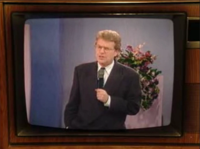 Jerry Springer hosting "The Masculine Feminist" TV show.
